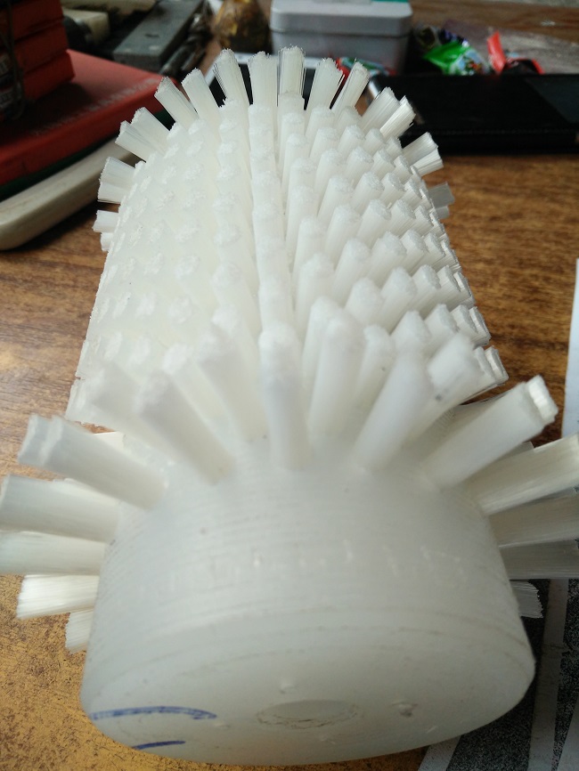產(chǎn)品的參數(shù):pp棒的直徑50mm和直徑60mm鉆孔排列沒空之間的間隔在5mm每一個毛的孔的直徑在5mm,植毛0.25mm白色的pbt絲技術(shù)注意的事項:一端有4個定位孔,此端的不植毛孔數(shù)為18mm倆端個倆圈毛長為15mm其余為毛長10mm...